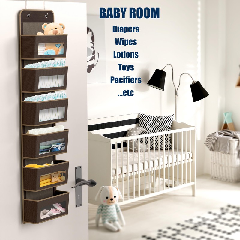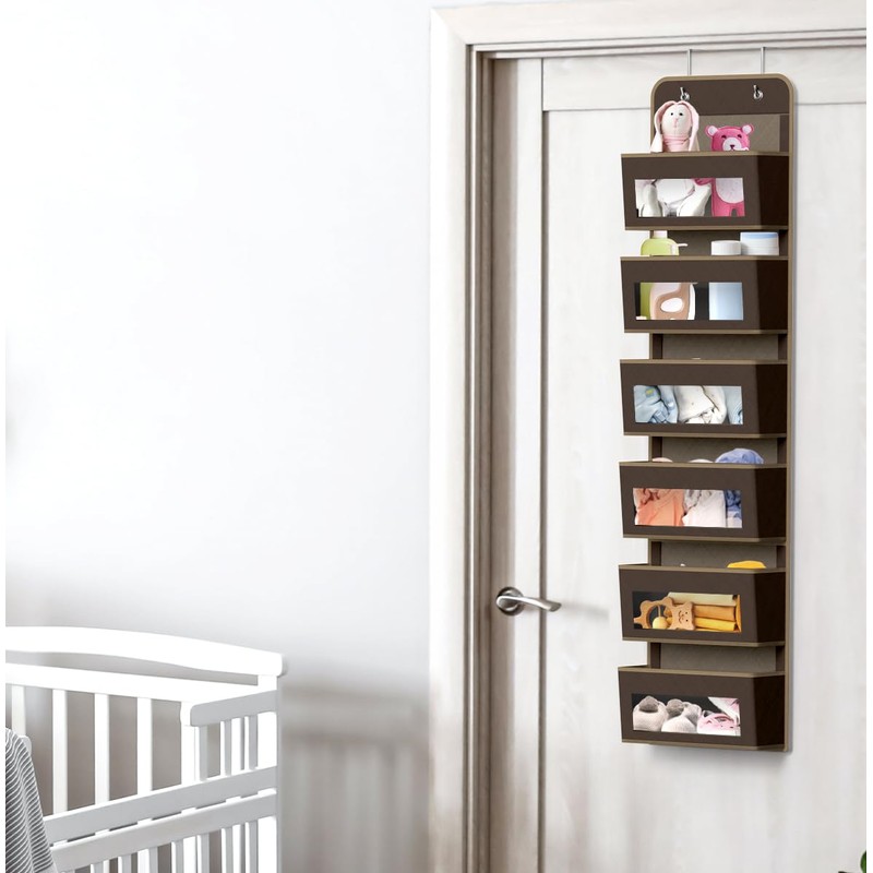 SIMPLE HOUSEWARE SimpleHouseware Baby Over The Door Hanging Organizer Storage, 6 Clear Window Pocket, Brown