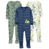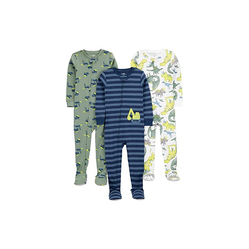 Simple Joys by Carter's Baby Boys' 3-Pack Snug Fit Footed Cotton Pajamas, Navy Stripe/Sage Green Construction/White Dinosaur, 12 Months