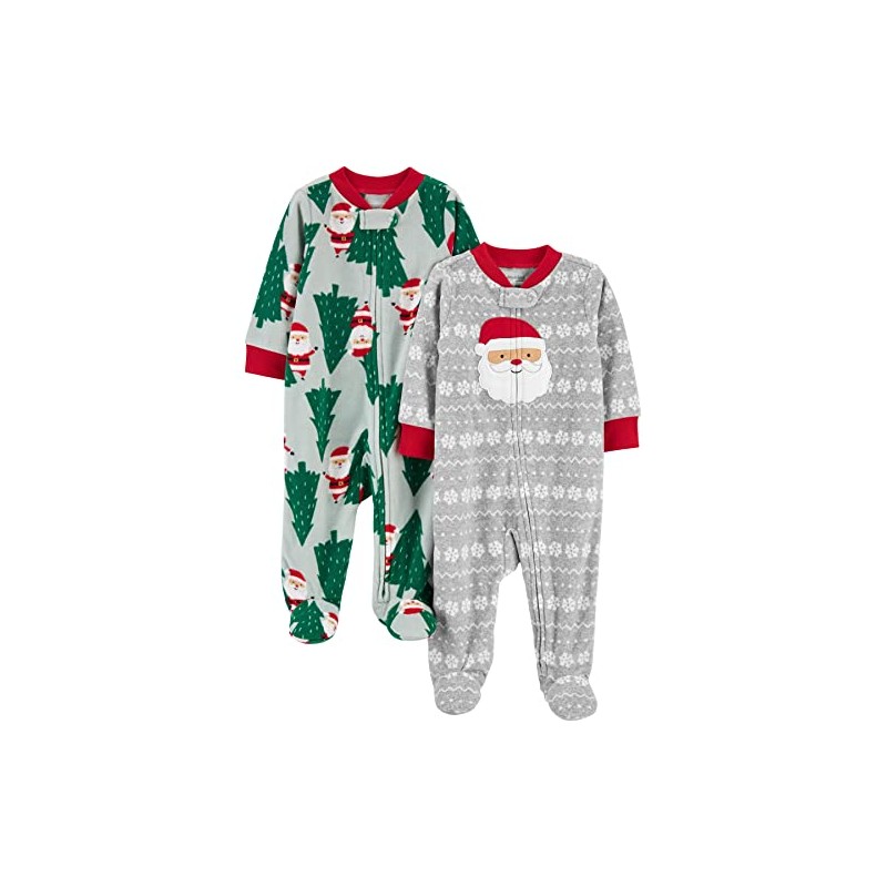 Simple Joys by Carter's Baby Holiday Fleece Footed Sleep and Play, Pack of 2, Green Santa/Grey Festive Print, Preemie