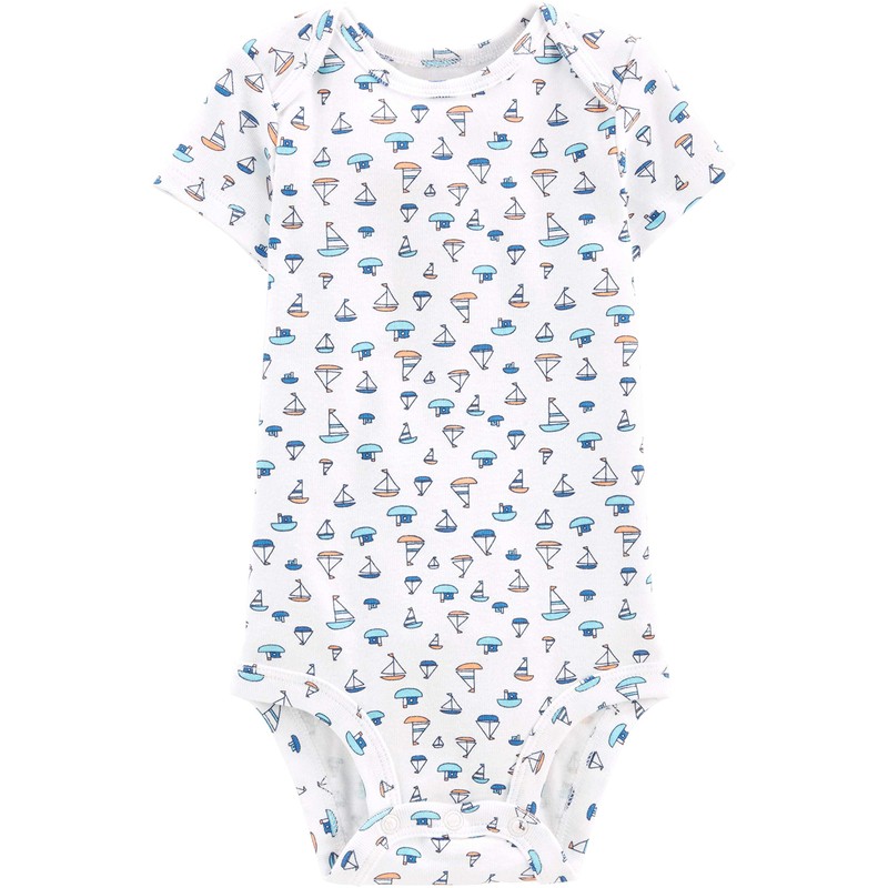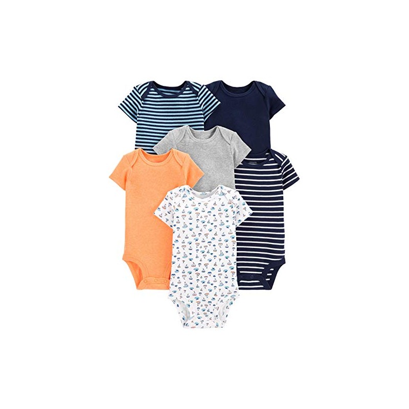 Simple Joys by Carter's Boys' 6-Pack Short-Sleeve Bodysuit, sailboat/blue stripe/orange/gray, Newborn