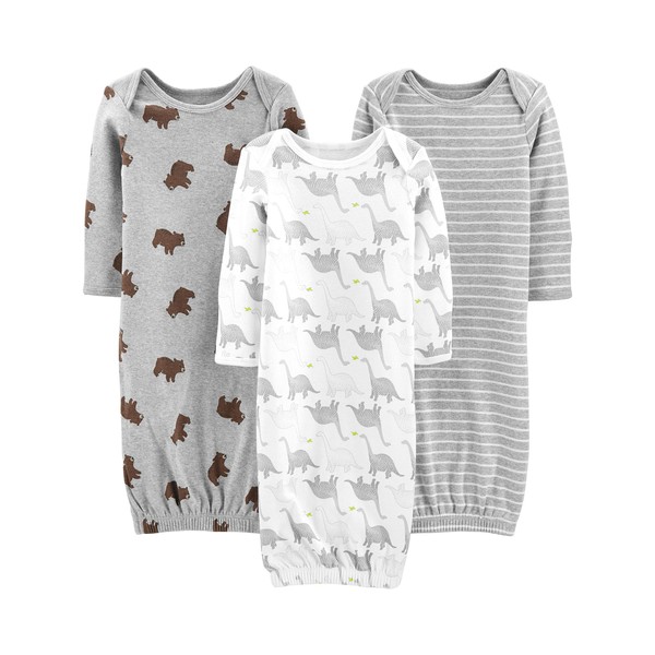 Simple Joys by Carter's Unisex Babies' Cotton Sleeper Gown, Pack of 3, Bear/Stripe/Dinosaur, Newborn
