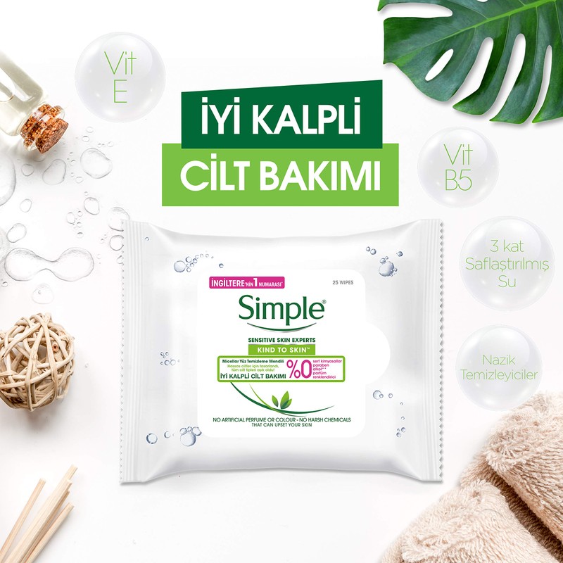 - Simple wipes contain no artificial perfume or colour and no harsh chemicals that will upset your skin