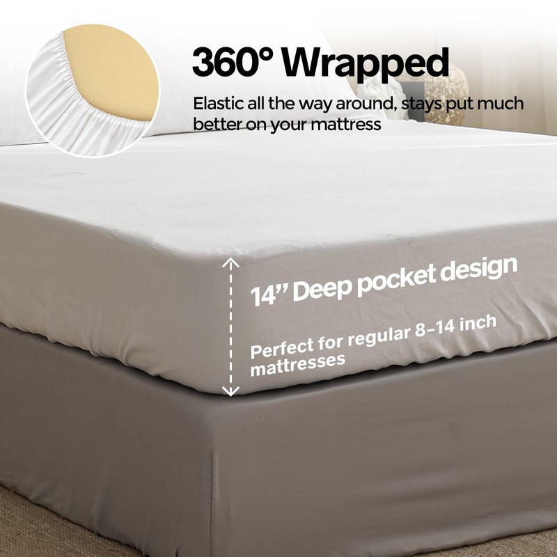 - PACKAGE –Queen Size Linen Fitted Sheet is 60x80+14”. Only 1 pc fitted sheet! 14 Inch Deep Pocket with 360°wrapped elastic all around make the linen fitted sheet stay put much better on your mattress. Simple&Opulence linen fitted sheet will exceed all your needs.