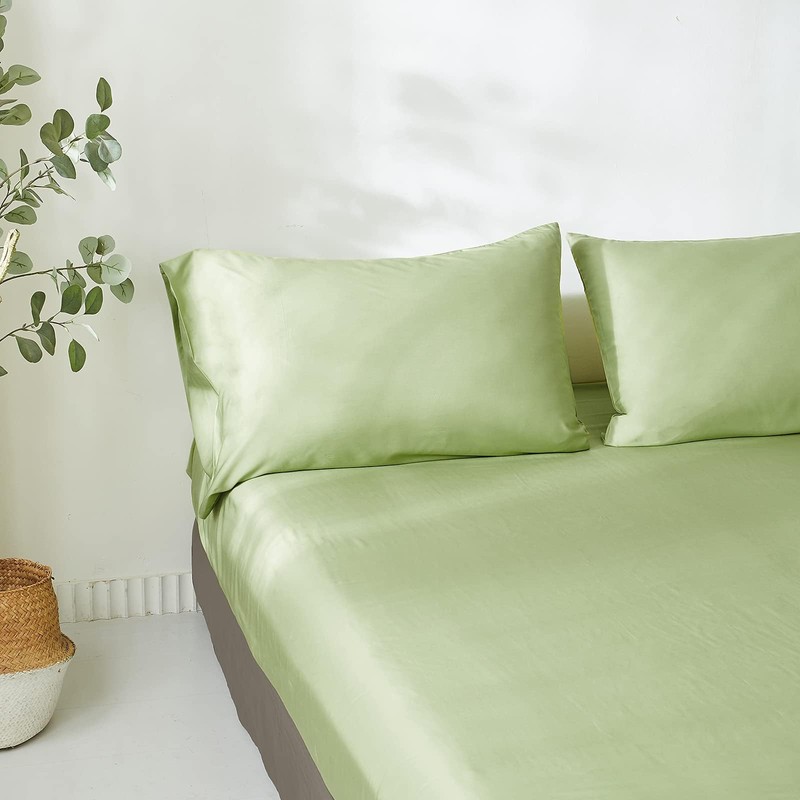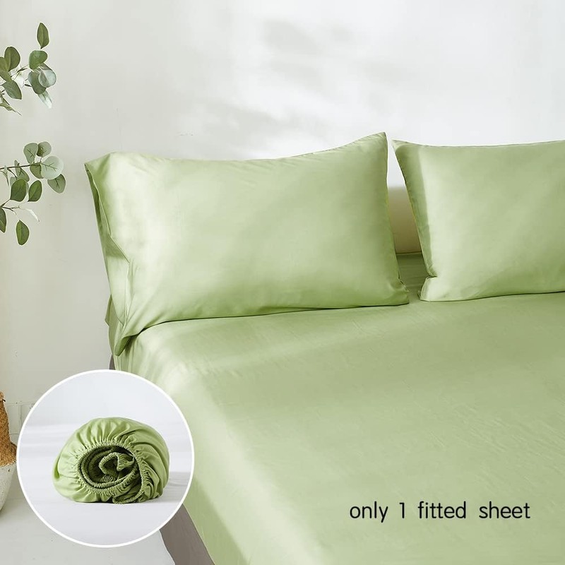 Simple&Opulence 100% Viscose Made from Bamboo Fitted Sheet, 1 Piece Only Mattress Cover, 15 Inch Deep Pocket Comfy Bed Sheet(Light Green,King)