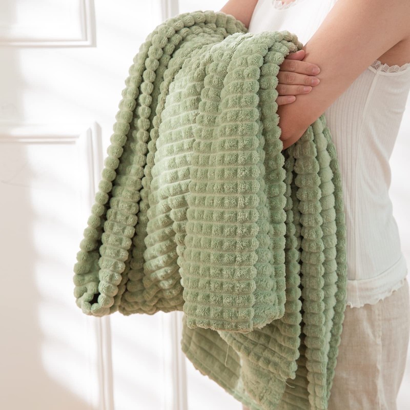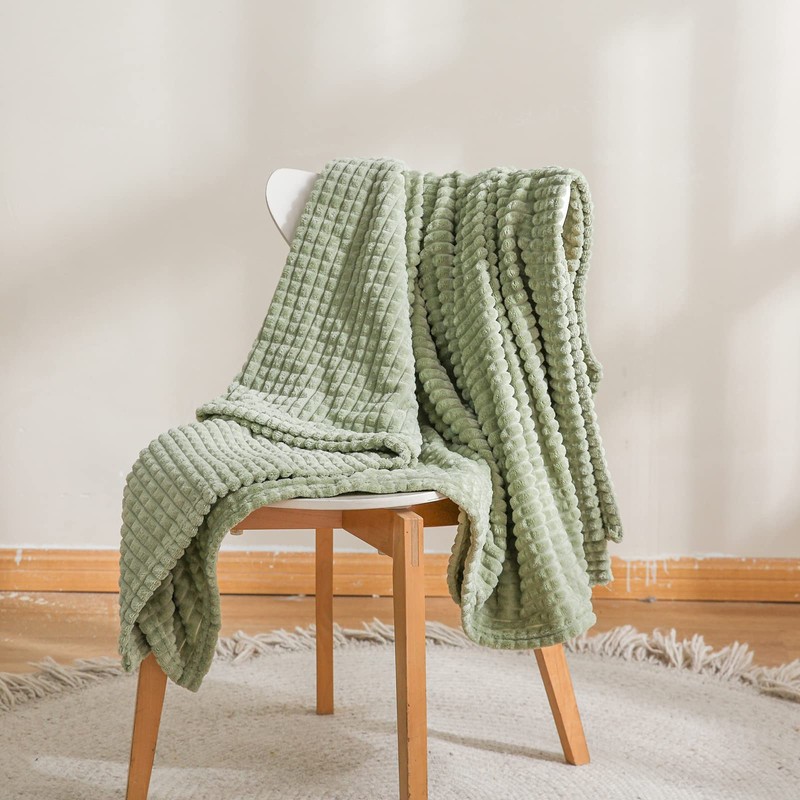 Simple&Opulence Microfiber Throw Blanket Grid Design,130cm x 170cm,Super Soft Fluffy Light Weight Solid Bed Blanket for Couch, Sofa,Bedroom Accessories(Sage Green)