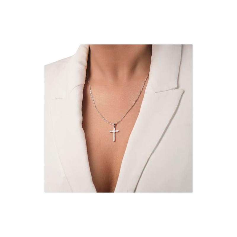 Simple Plated Cross Necklace for Women | Lightweight Adjustable Rhodium Plated Chain included