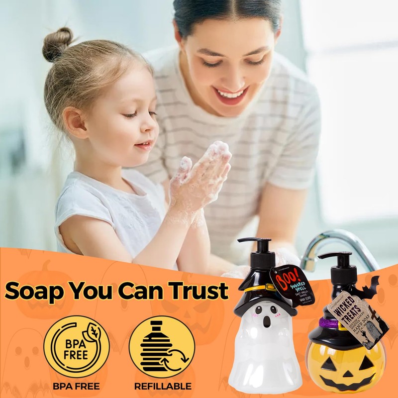 - Scented Liquid Soap: The liquid soap included in the set is seasonally scented, enhancing the Halloween ambiance with fragrances that are evocative of the season.