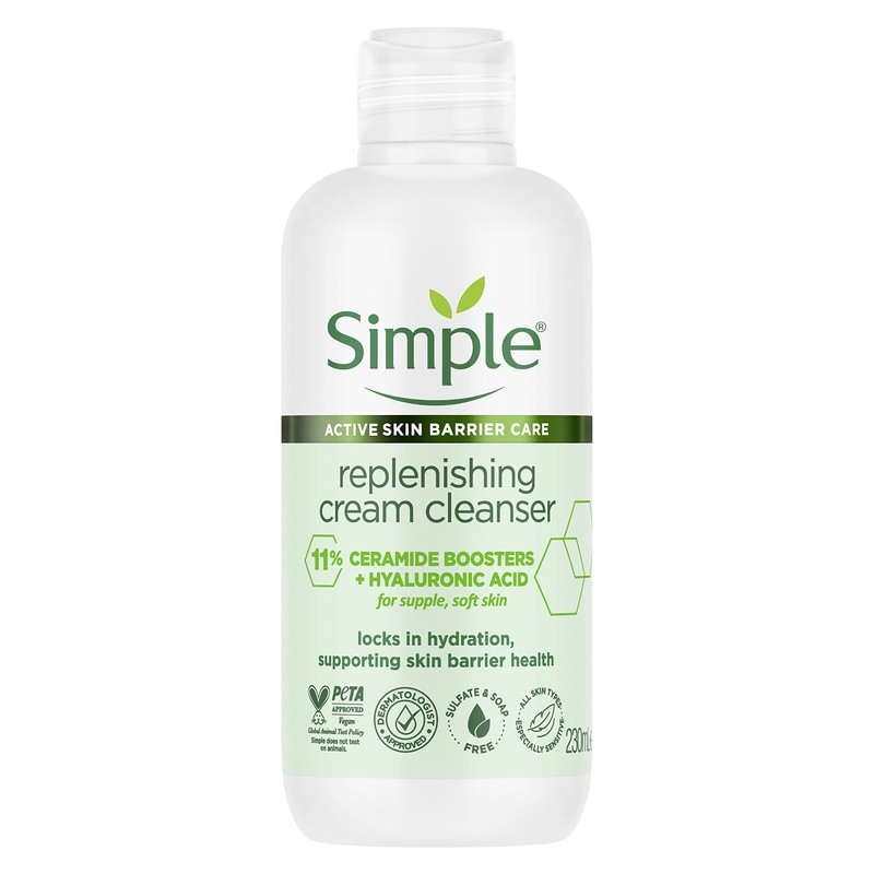 - Deep cleansing, super skin-softening. Simple Replenishing Cream Cleanser transforms dry skin with every wash, restoring hydration for plump, supple results.