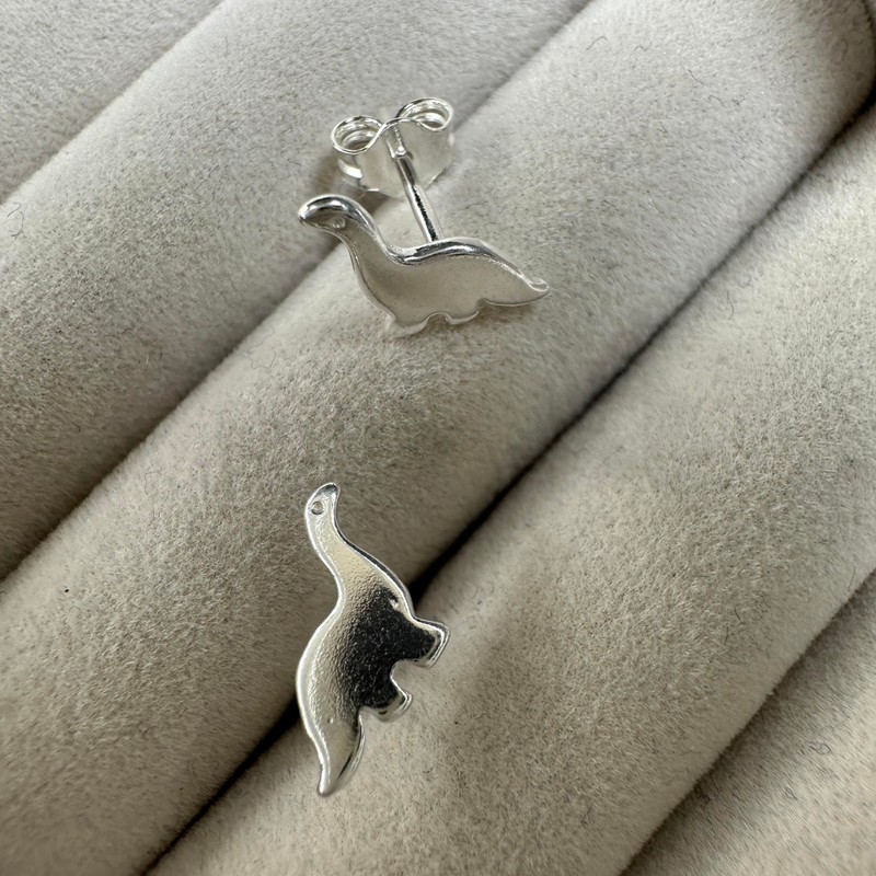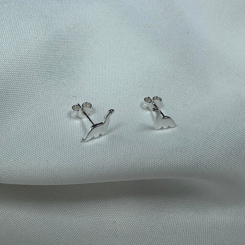 Simple Sterling Silver Dinosaur Stud Earrings, Sterling Silver, No Gemstone