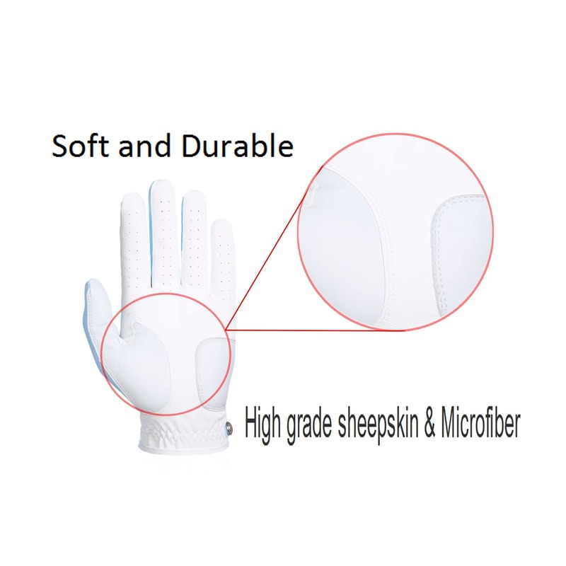SIMPLE SYMBOL Men's Golf Glove Premium Synthetic Leather,Stable Grip,Two Pack(Left is Wear on Left Hand,Right is Wear on Right Hand) Four Colors to Choose from White/Sky/Beige/Red(Sky,S,Left)