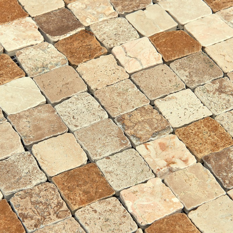 Simple Tile - Marble Mosaic Tile for Kitchen Backsplash, Bath Showroom Floor, Etc, Rabat Collection, Square with Rough Edge, 12"X12"X3/8", Tumbled (Sample 6"X6", MM 1103 - Barrio)