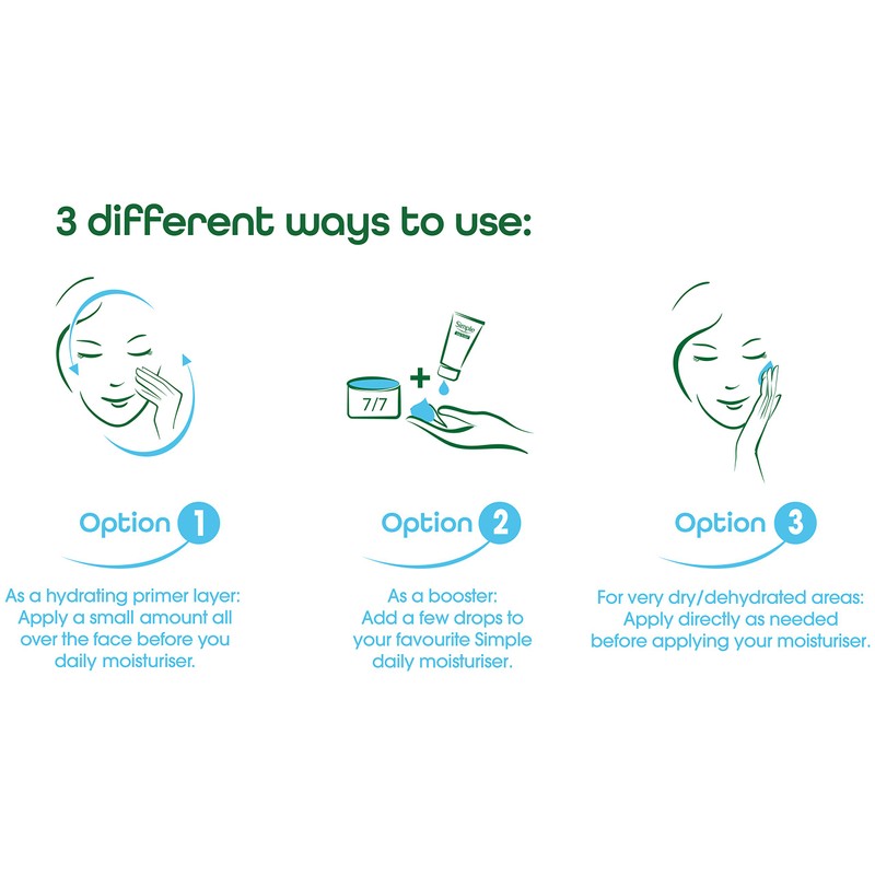 • Simple Water Boost Hydrating Booster contains no harsh chemicals, artificial colors or perfume that may upset your skin.