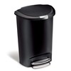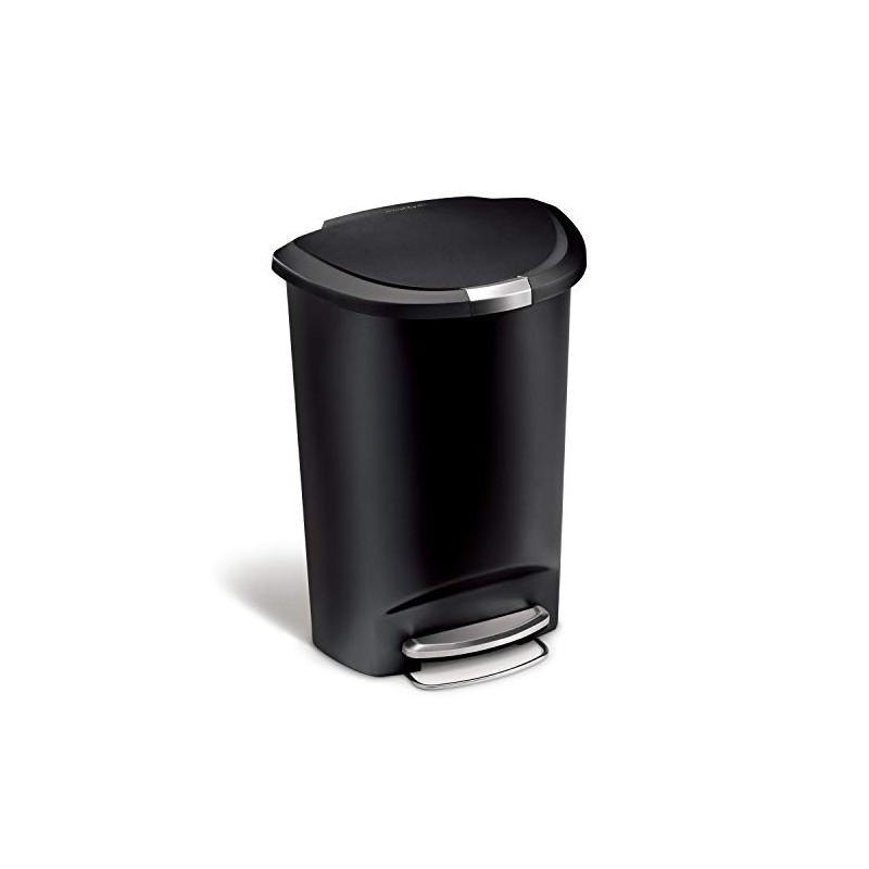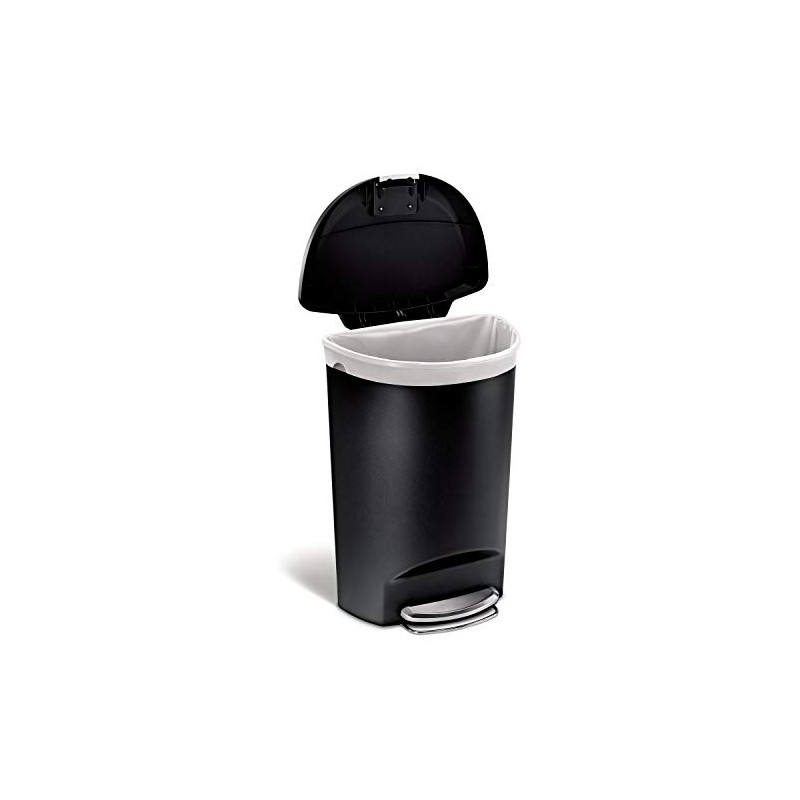 simplehuman 50 Liter / 13 Gallon Semi-Round Kitchen Step Trash Can with Secure Slide Lock, Black Plastic
