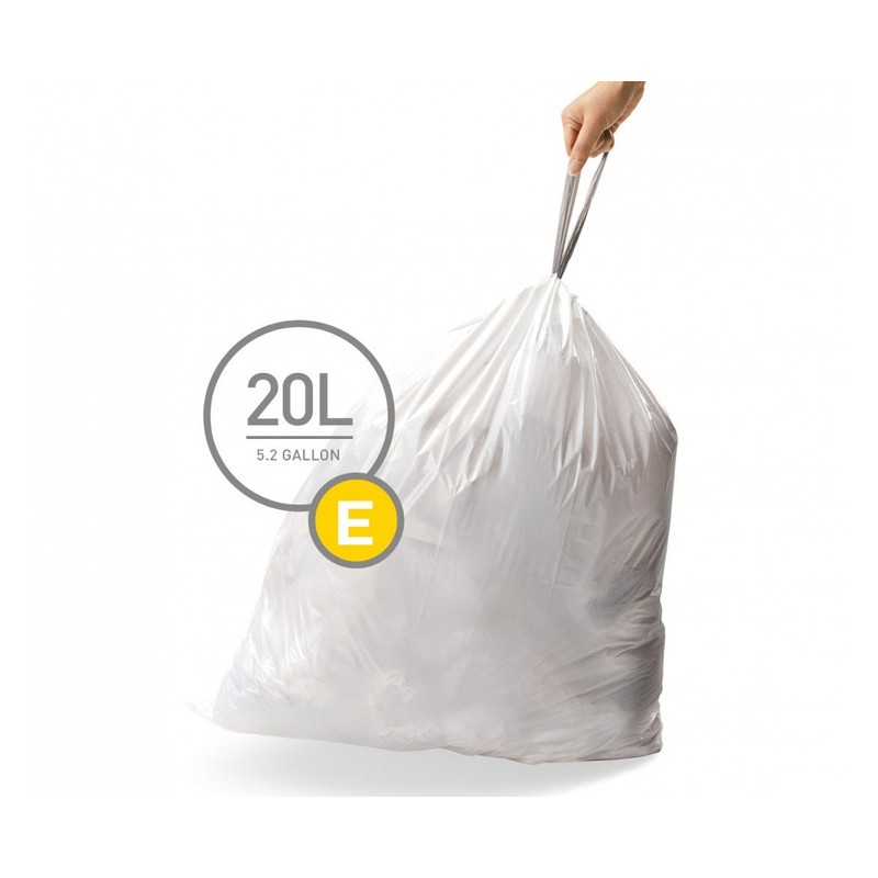 simplehuman Code E Custom Fit Drawstring Trash Bags 20 Liter / 5.2 Gallon, White, 60 Liners
