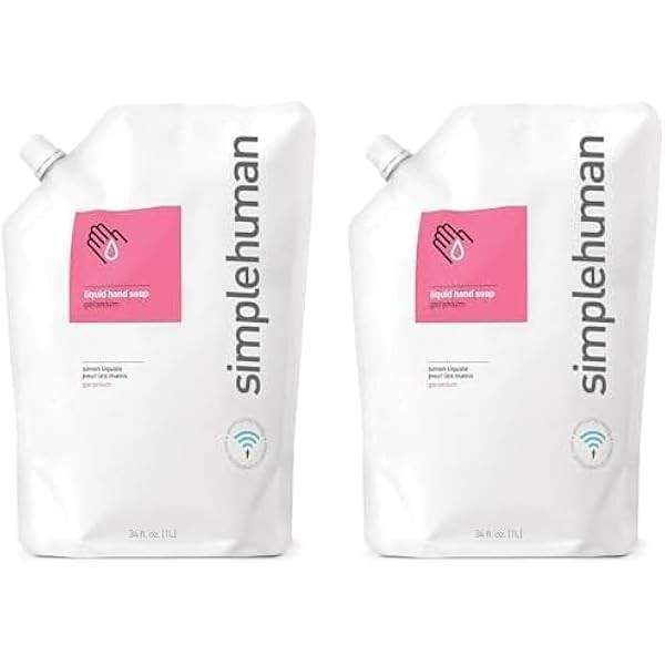 simplehuman Geranium Moisturizing Liquid Hand Soap Refill Pouch, 34 Fl. Oz (Pack of 2)