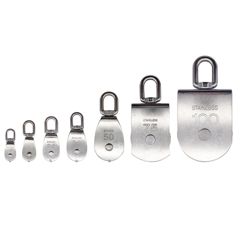 - This pulley is made of stainless steel with excellent rust and corrosion resistance