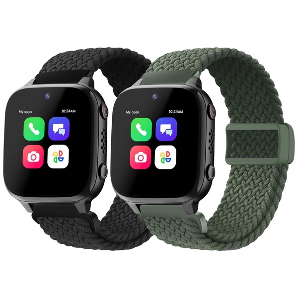 SimpleThings Braided Band Compatible with Cosmo JrTrack 3/2 SE/2 Smartwatch, 2Pack Stretchy Nylon Strap with Snap-on Clasp