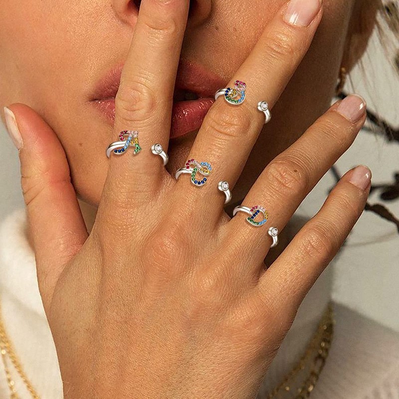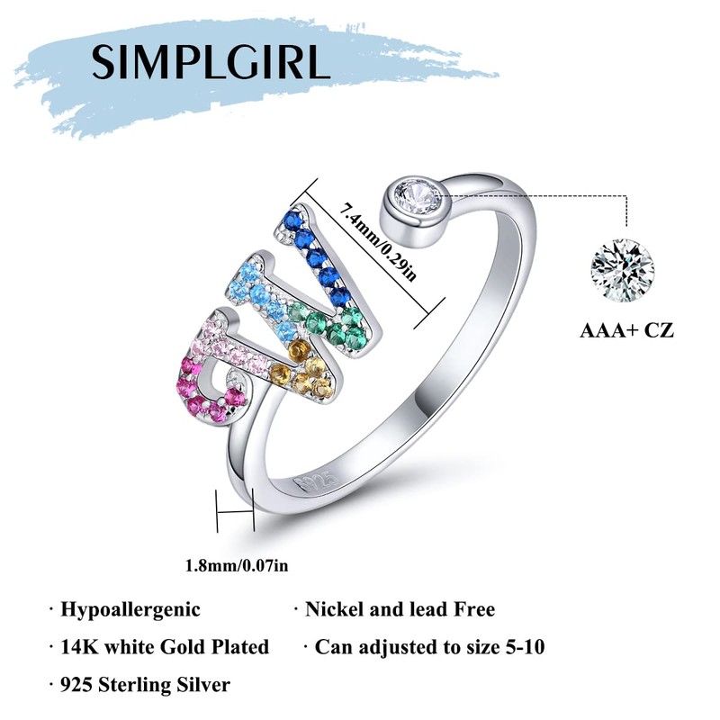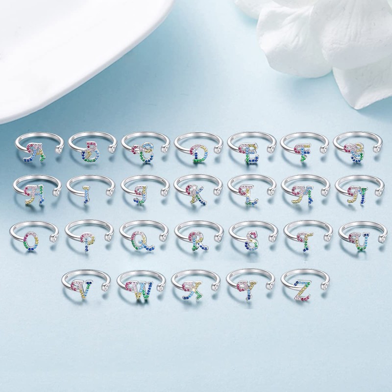 - Classic design: silver rings have 26 different letters with colorful cubic zirconia, can adjust the size