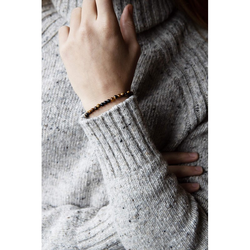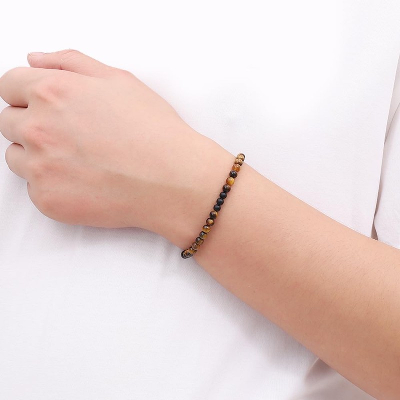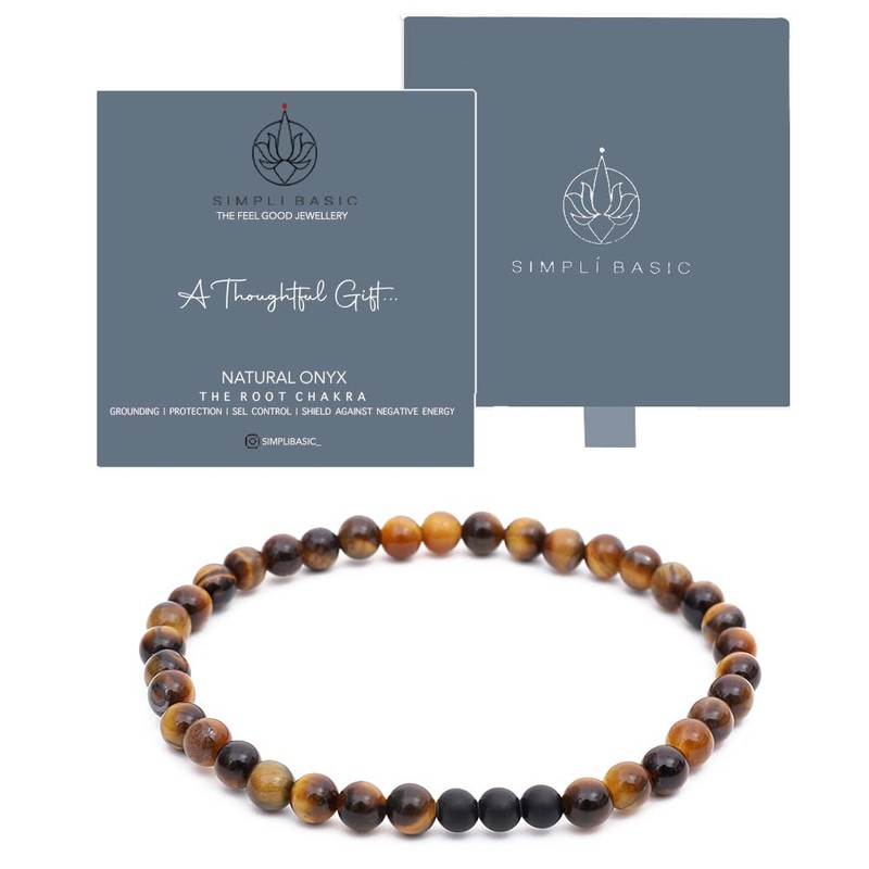 SIMPLÍ BASIC Natural 3 Matte Onyx and Tiger Eye Healing Gemstone Bracelet 4mm Bead | Entrepreneur Luck | Decision Maker | Removes Negative Energy | Inc Gift Box