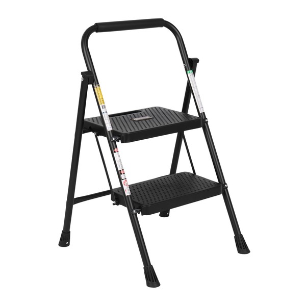 - Enhanced Safety with Anti-Slip Features – Equipped with a secure handgrip and wide, textured anti-slip steps, our 2 step stool minimizes the risk of slips and falls. Large rubber feet make full contact with the ground, ensuring a secure grip and protecting floors from scratches. Feel safe while standing!