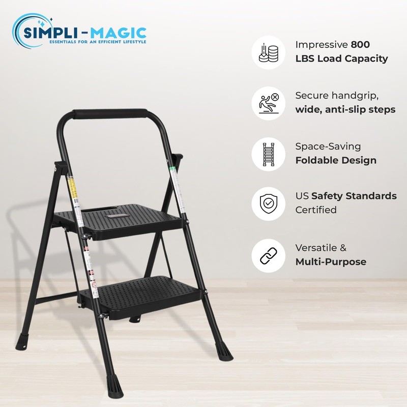 SIMPLI-MAGIC 2-Step Ladder, 800 LBS Capacity Folding Step Stool – Anti-Slip Wide Steps & Handgrip – ANSI Certified Lightweight & Durable Steel Stepping Stool for Kitchen, Home, Office & Garage