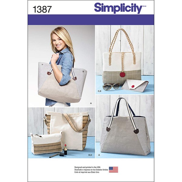 Simplicity 1387 Assorted Tote Bag, Purse, and Clutch Sewing Patterns, One Size Only