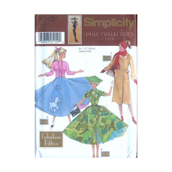 Simplicity 9840 - Fabulous Fifties for 11.5-inch Fashion Dolls - Patterns for 3 Outfits (Doll Collector's Club)