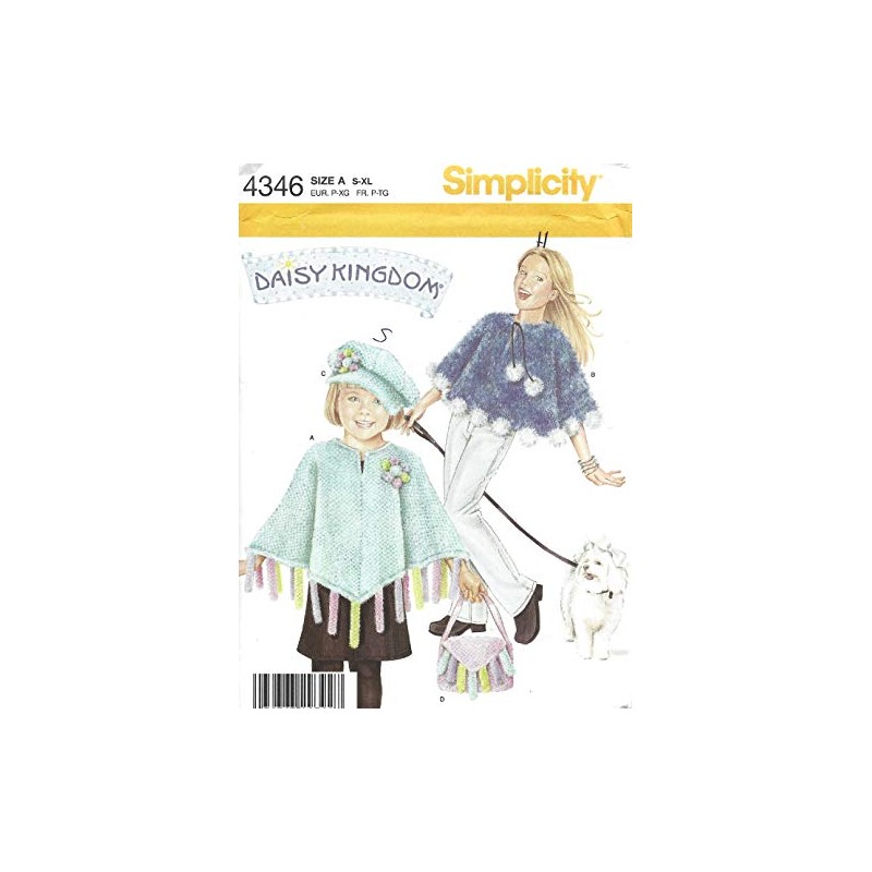 Simplicity Daisy Kingdom Pattern 4346 Girls Size S-XL Girls Fleece Poncho, Hat and Purse in 3 Sizes S-L