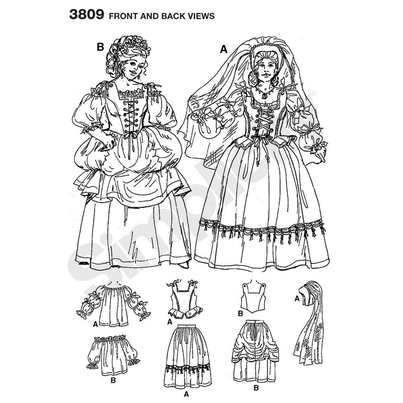 - Simplicity pattern includes sewing templates for (2) complete vintage historical gown looks.