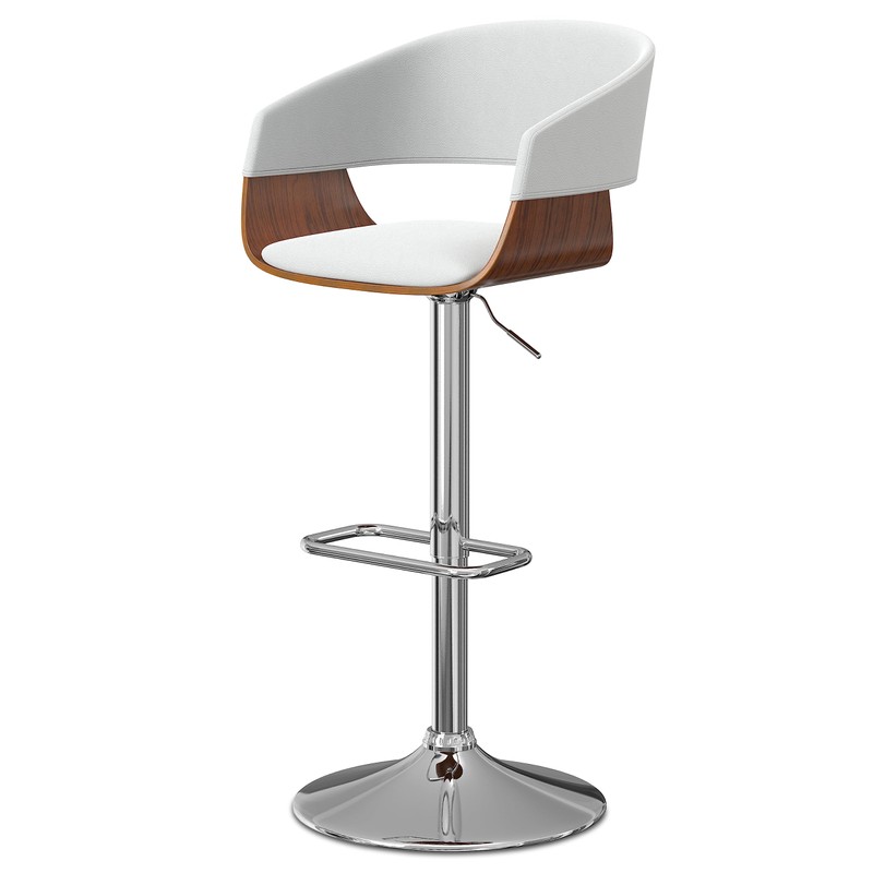 SIMPLIHOME Lowell 33 Inch Wide Mid Century Modern Adjustable Swivel Bar Stool in White Faux Leather, for The Dining Room and Kitchen