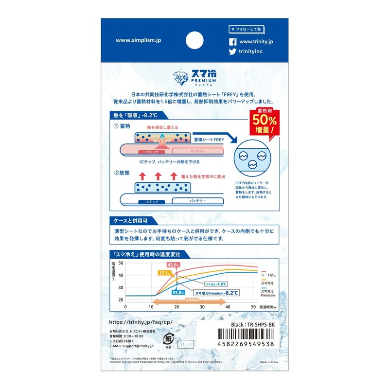 simplism TR-SHPS-BK Premium Peel and Stick Smartphone Cooling Sheet, Heat Storage, 1.5 Times, Black