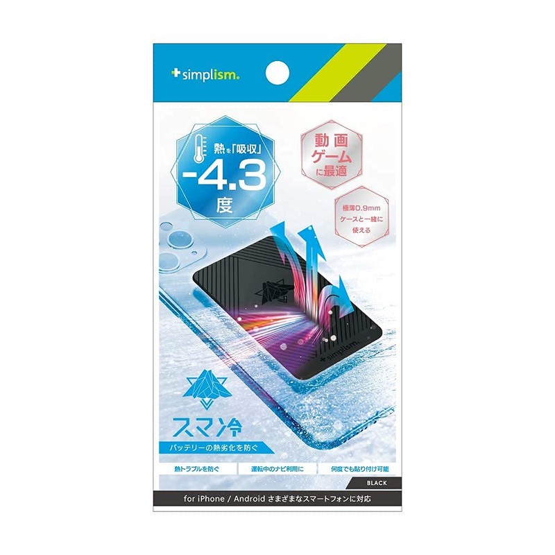 Simplism TR-SHS-BK Smart Cooling Sheet For Smartphones, Stick-and-Remove, Black