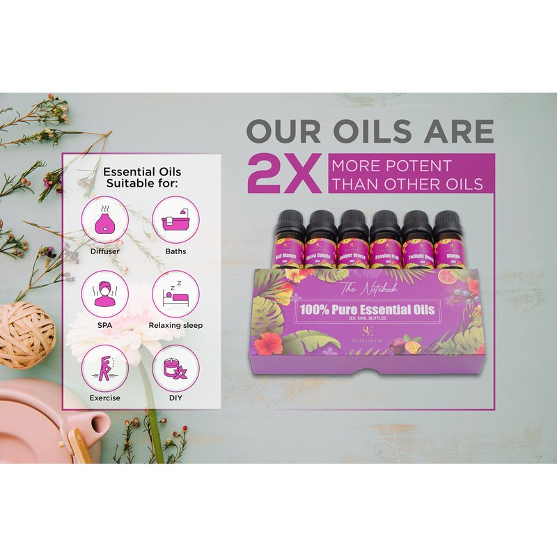 Simplistic Elegance Essential Oils Set - Top 6 Natural Aromatherapy Oils for Diffusers Humidifier Massage Sleep Skin & Hair Care DIY Candle and Soap Making Gifts | 10 ML (The Notebook)