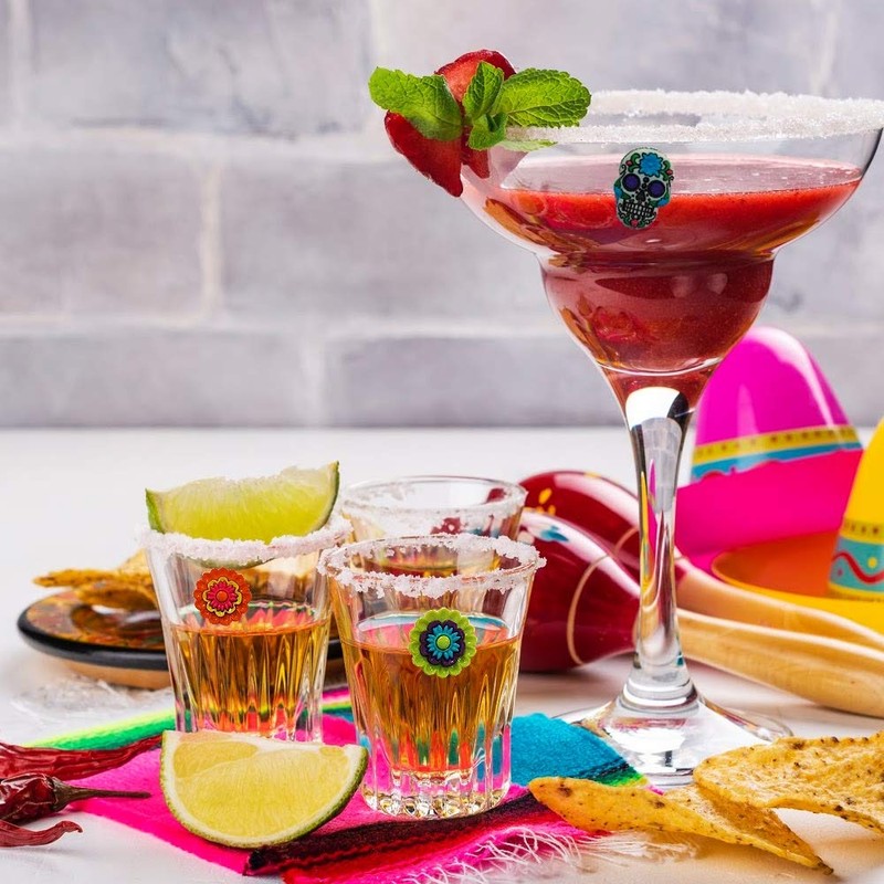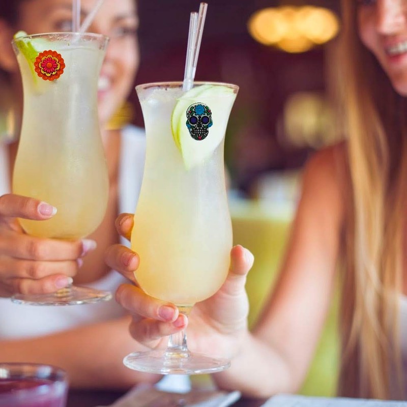 - FUN DAY OF THE DEAD PARTY SUPPLIES! These sugar skull and flower wine charms are fun party accessories for Day of the Dead, Fiestas, Halloween or even Cinco de Mayo parties! Our magnetic wine glass charms work with two strong magnets and attach through the glass securely, and will not come off until you take them off.