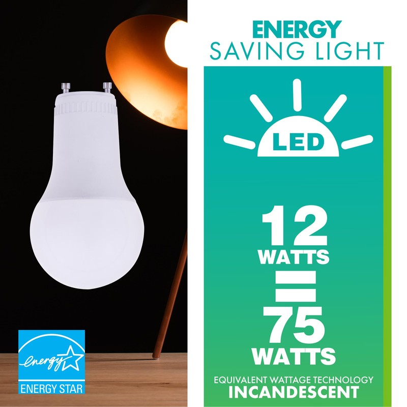 - Energy Star rated. Pack includes 50 A19 shaped GU24 base twist and lock individual led lightbulbs.