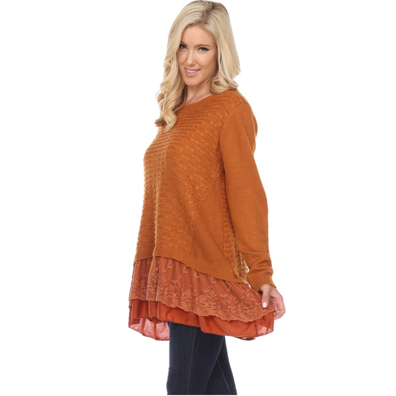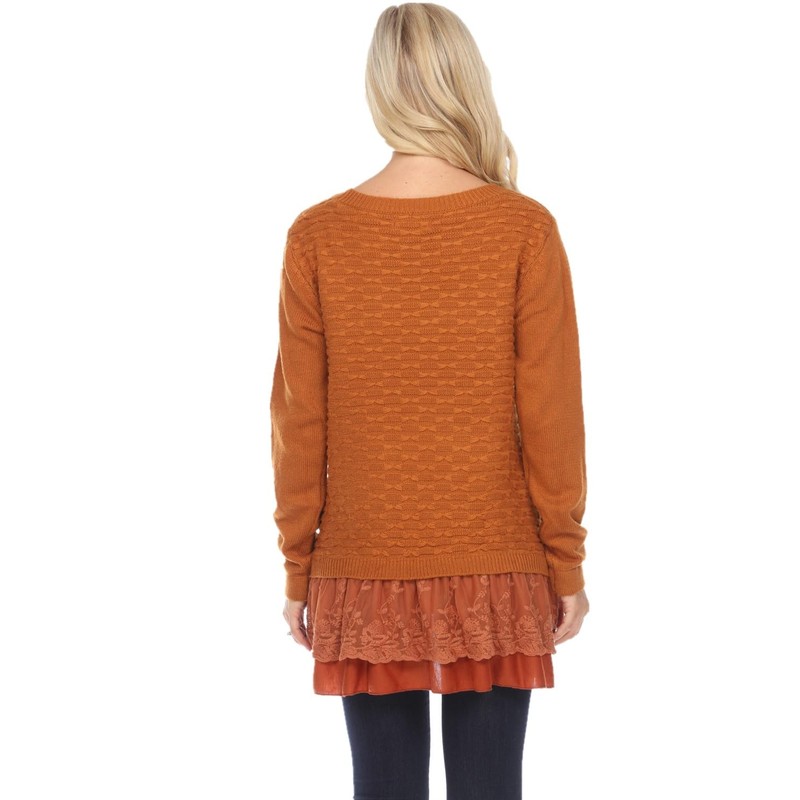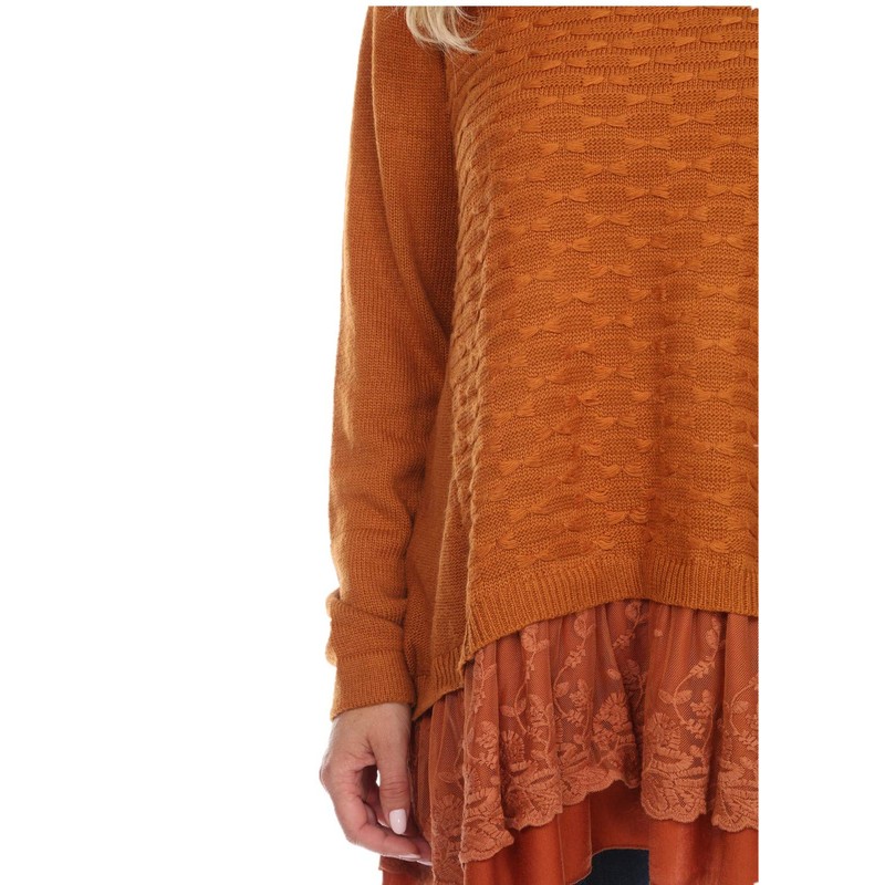 SIMPLY COUTURE Women's Casual Lace Wool-Blend Layered Tunic-Rust-2X