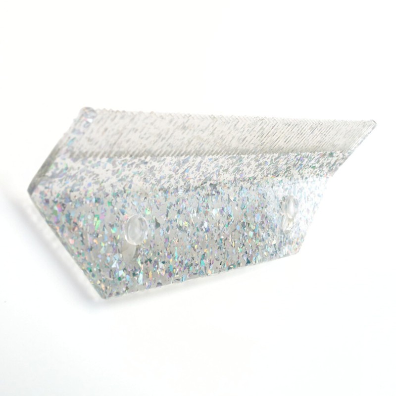 - 2 suction cups included to easily attach to any flat surface - Silver glitter acrylic for a stunning yet practical hairdressing tool