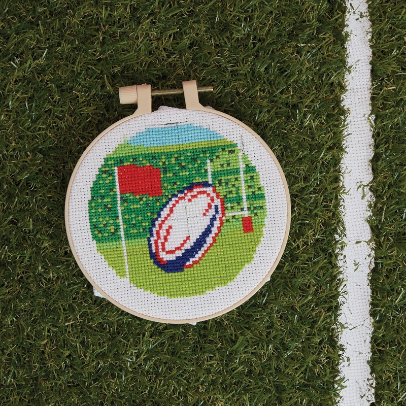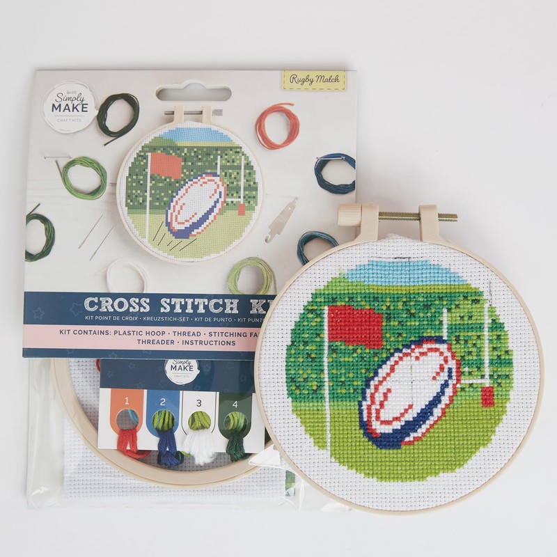 Simply MAKE Cross Stitch Kit Rugby Match Design, Kids & Adults, Hoop, Embroidery Thread, Adult Crafts, Beginners Craft Kit