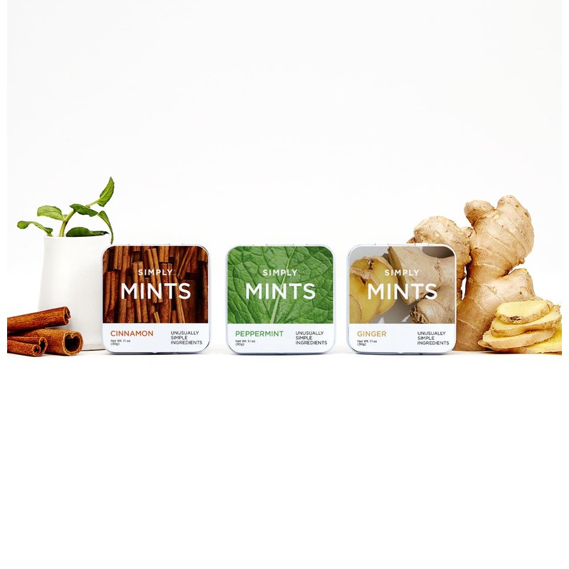 SIMPLY Mints | Variety Pack - Peppermint, Ginger, Cinnamon | Pack of Six (180 Pieces Total) | Breath Freshening + Aspartame-Free + Vegan + non-GMO