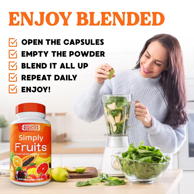 Simply Nature's Pledge - 90 Fruit Capsules - Made with Whole Food Superfoods, Packed with 25 Different Fruits - 100% Soy Free