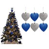 Simply Products 6 Heart Baubles - Great Christmas Tree Decorations, Glitter Heart Baubles (Royal Blue & Silver Glitter)