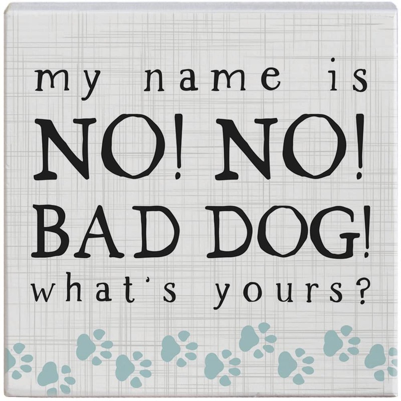 Simply Said, INC Small Talk Squares 5.25" Wood Sign - My Name is NO! NO! BAD DOG! What's Yours - STS1645