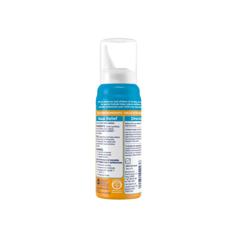 Baby Simply Sterile Saline Nasal Mist clears congestion, dust and debris while improving the ability to smell and gain clearer breathing. Baby Simply Sterile Saline Nasal Mist Contains no preservatives which can damage delicate nasal tissue Relief is gained from the common cold, irritants and dryness instantly with Simply Saline. No burning or stinging Contains no CFC's