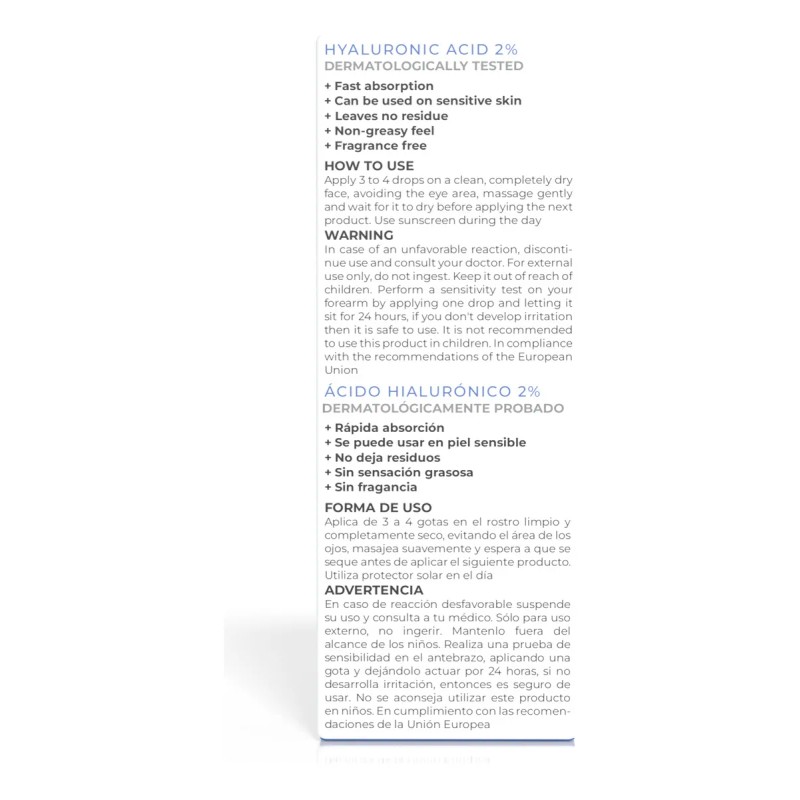 Ácido Hialurónico 2% – Hidratación intensiva y retención de agua.