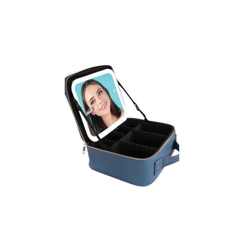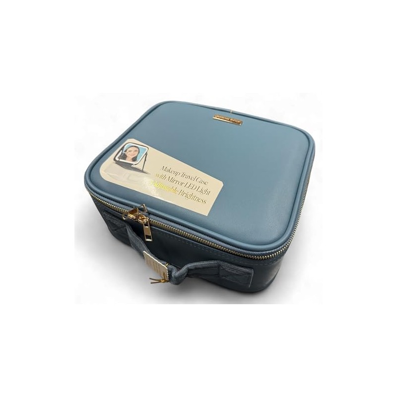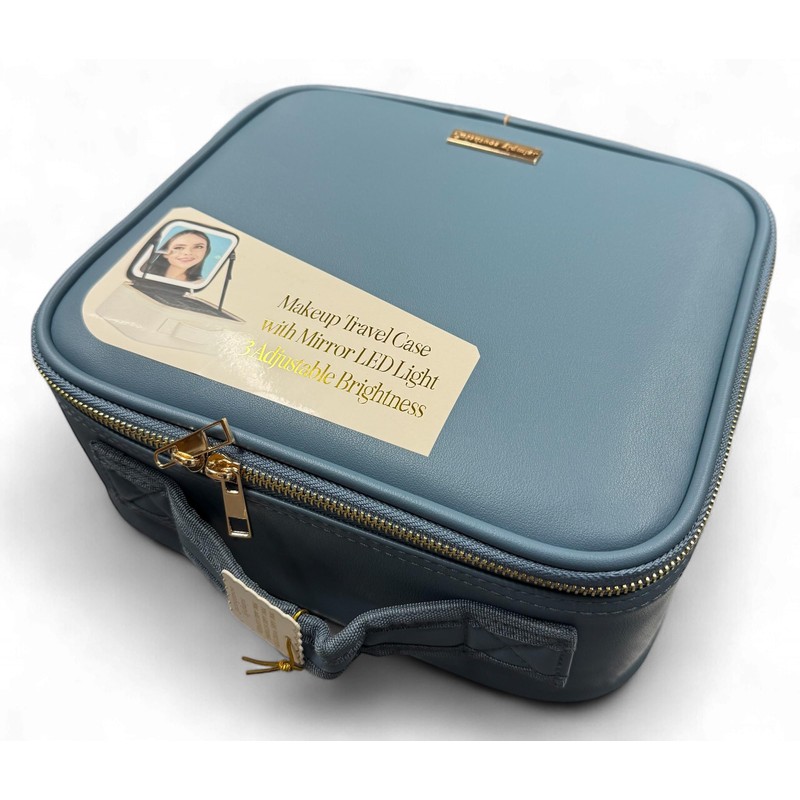 • Azur Blue Leather Makeup Travel Case With LED Mirror Light By Simply Southern