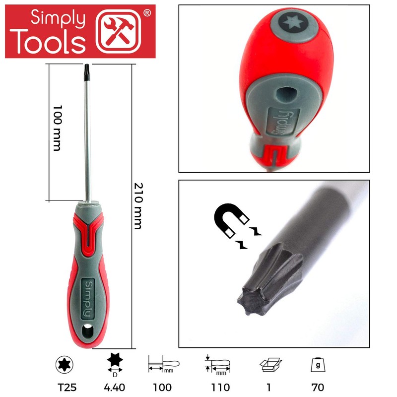 Simply Tools TORX25 T25 Torx Headed Screwdriver with greater strength and durability, extra grip on the screws head , Black