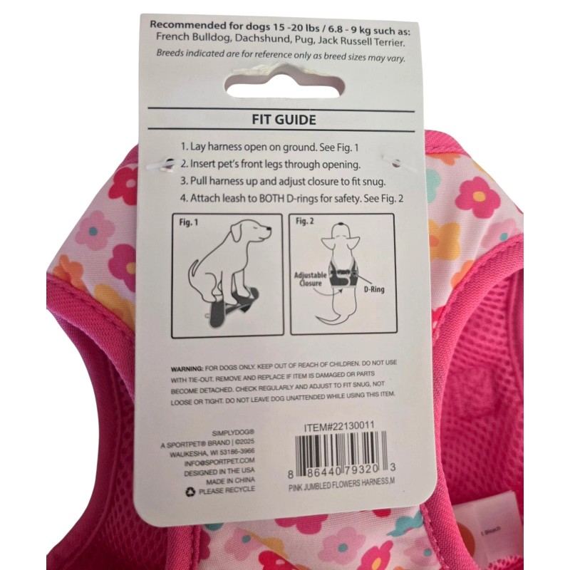 SimplyDog Simply Dog , Light & Dark Pink, Floral, Non Pull, Puppy/Dog Harness, Medium