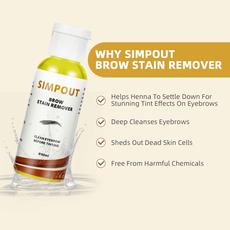 - Easy to Use: Just drop a small amount of Simpout Stain Remover onto a cotton pad. Swap it around your eyebrow area to clean the brows, and use it after henna to correct any mistakes