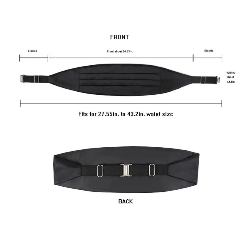 Simpowe Mens Solid Silk Cumberbund Black Adjustable Elastic Back Tuxedo Waist Accessory