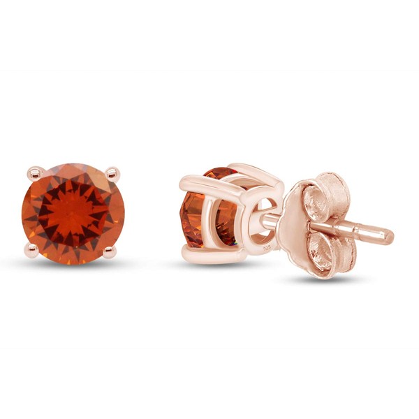 Simulated Orange Citrine Round Shape Stud Earrings In 14K Rose Gold Over Sterling Silver (0.5 Ct)